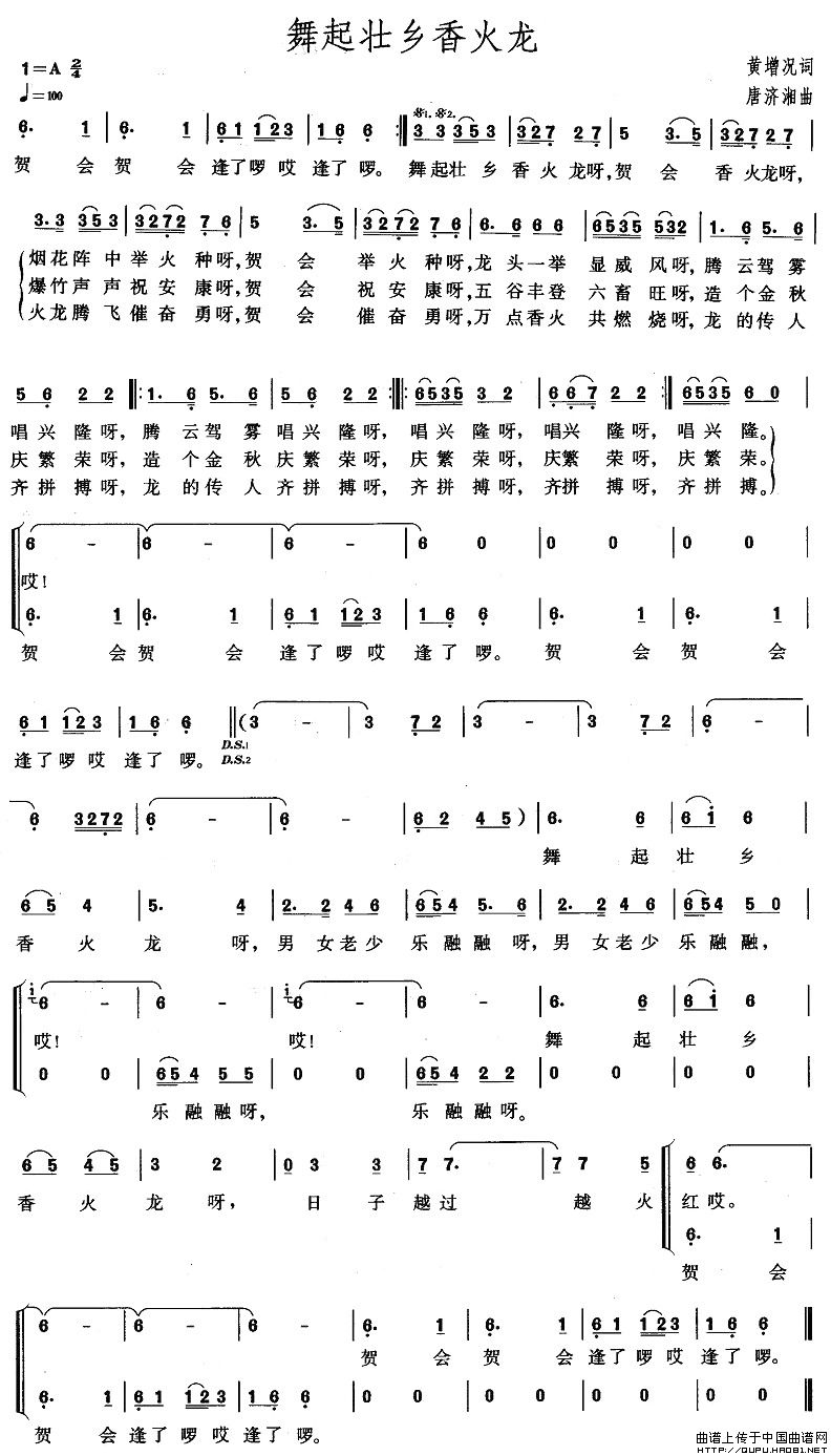 舞起壮乡香火龙合唱谱