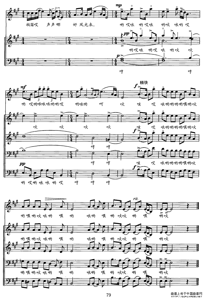 :江汉行(五)踏车)合唱谱该歌谱演奏者为合唱,歌曲名称为江汉行,歌谱类型为。集体演唱多声部声乐作品的艺术门类,常有指挥,可有伴奏或无伴奏。它要求单一声部音的高度统一,要求声部之间旋律的和谐,是普及性最强、参与面最广的音乐演出形式之一。人声作为合唱艺术的表现工具,有着其独特的优越性,能够最直接地表达音乐作品中的思想情感,激发听众的情感共鸣。声部的数量没有规定,一般有四个声部。多为男高音区,男中低音区,女高音区,女中低音区。