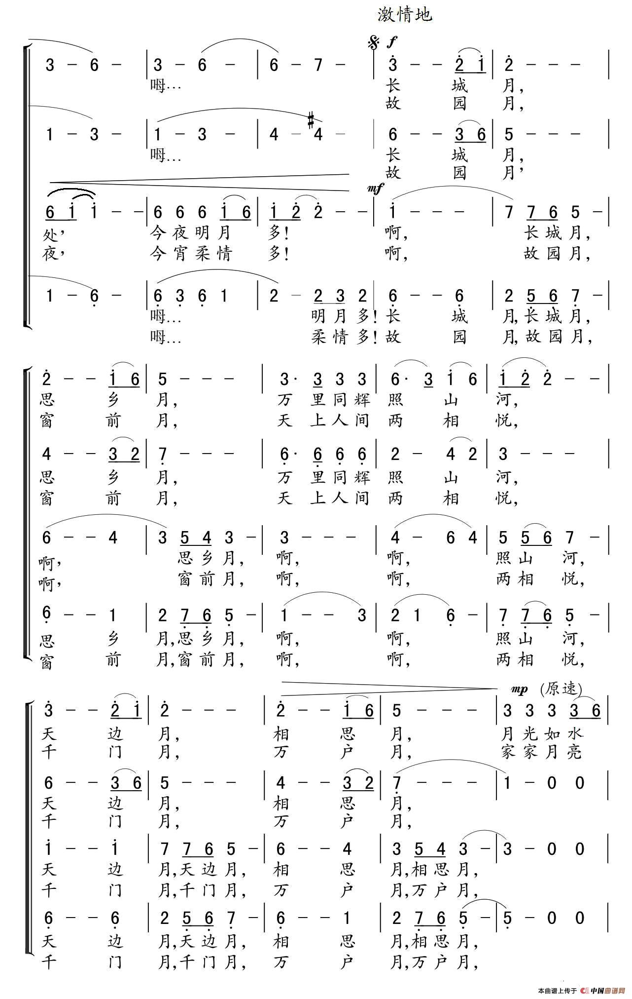 相关歌谱千里共婵娟(林澍词 葛清曲、四部合唱、正谱)合唱谱