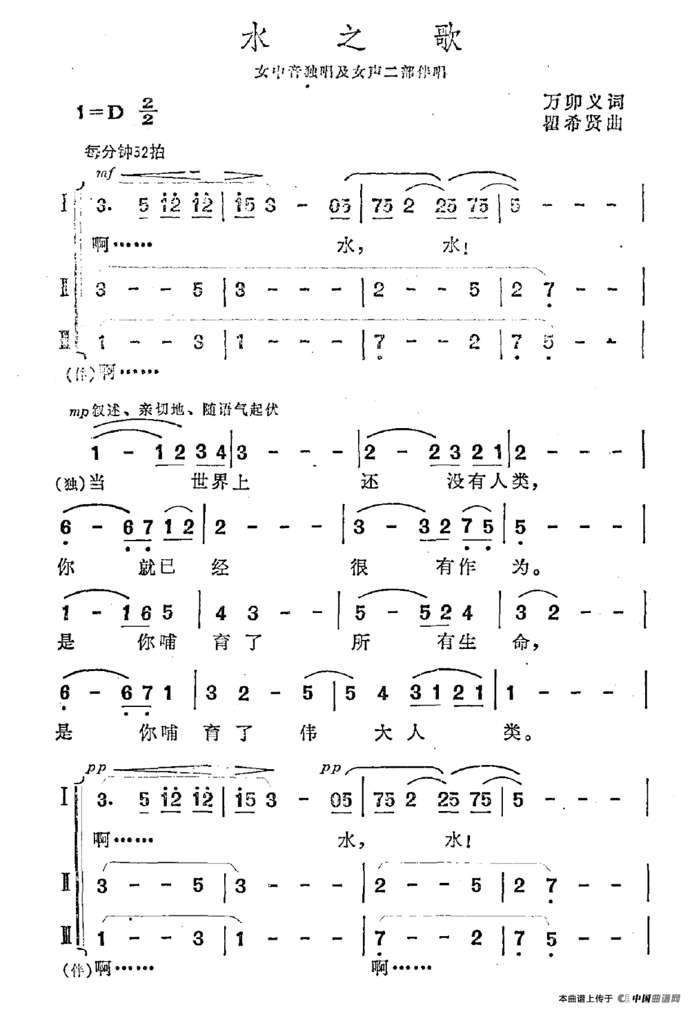 水之歌(万卯义词 瞿希贤曲)合唱谱