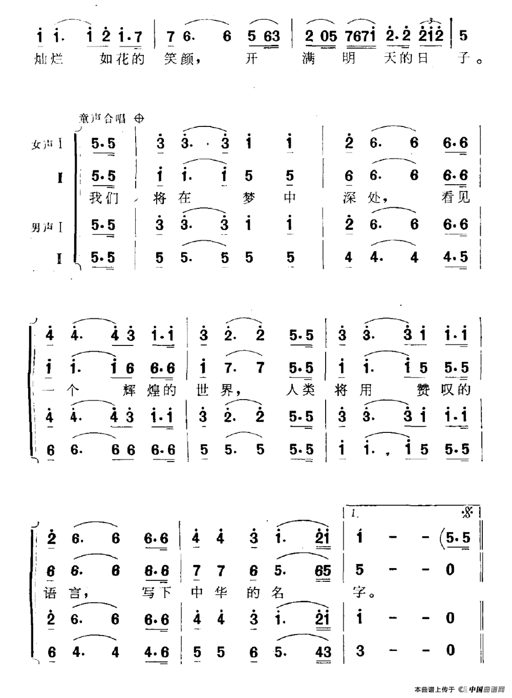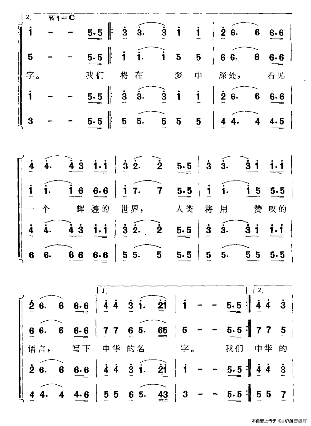 写下中华的名字合唱谱