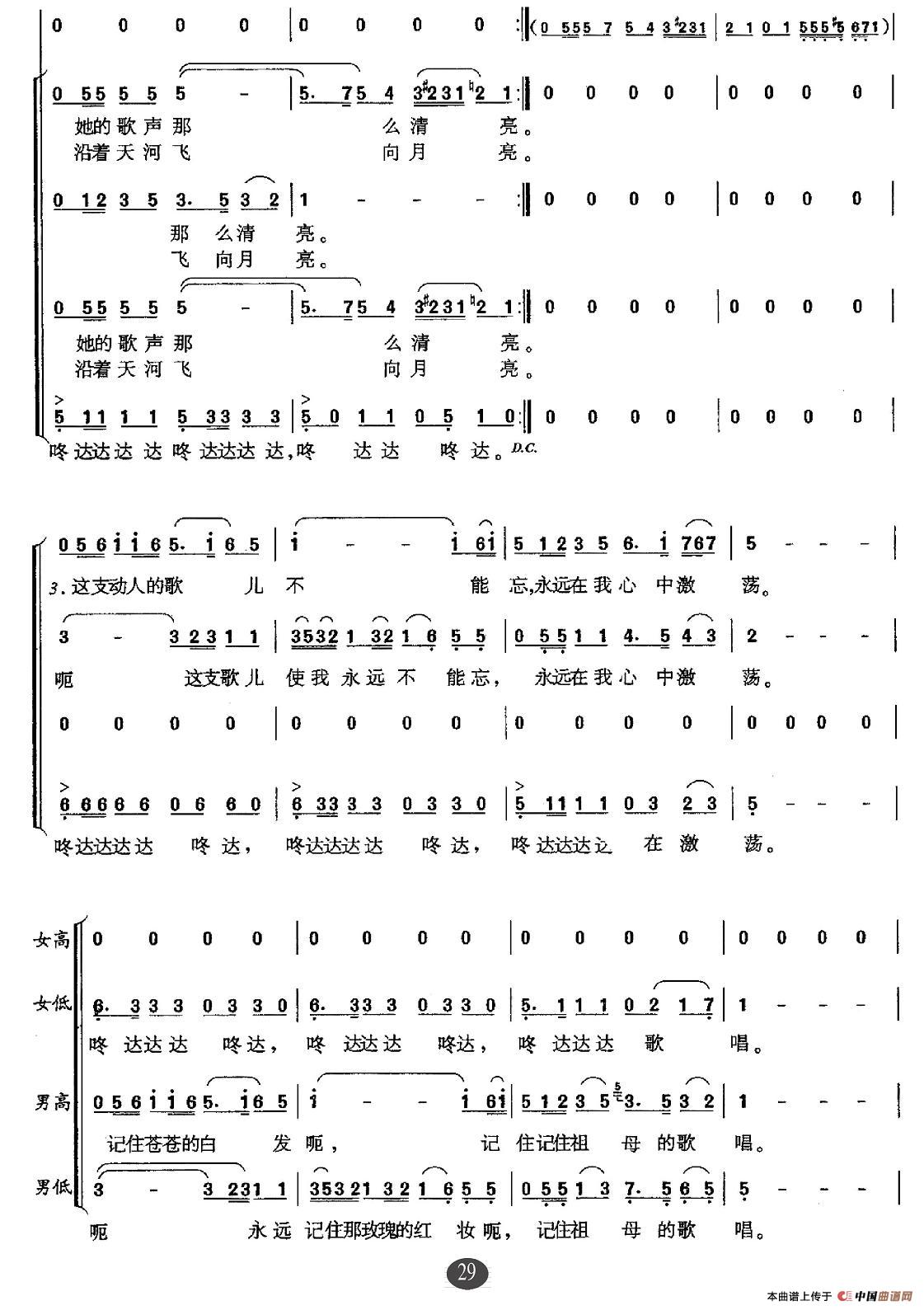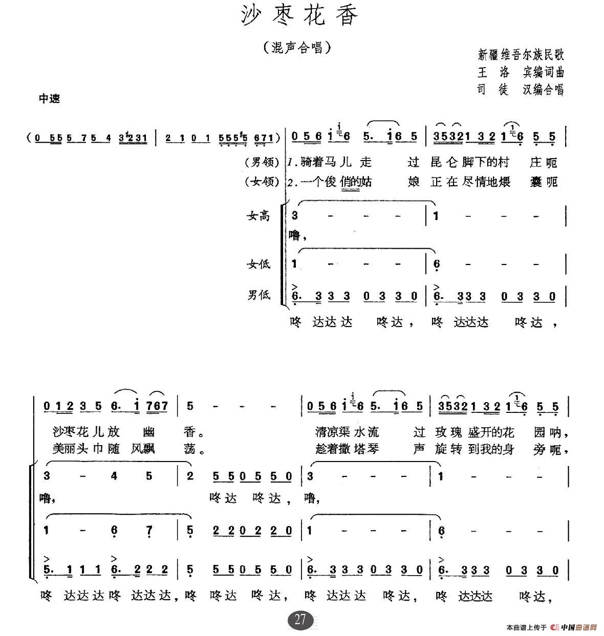 达坂城的姑娘(三部合唱)合唱谱