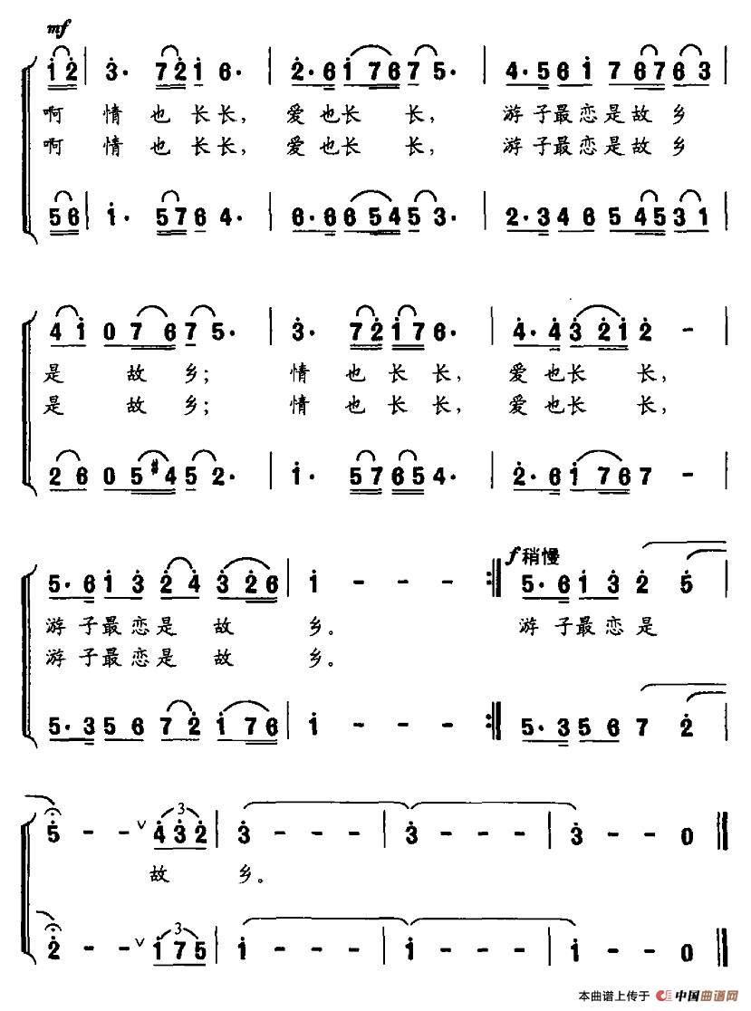 故乡之恋(无伴奏合唱、五线谱)合唱谱