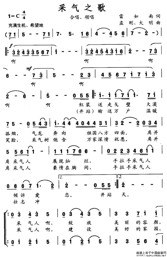 采气之歌合唱谱