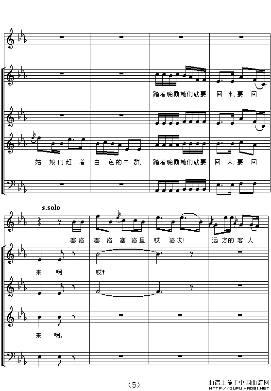 远方的客人请你留下(独唱及混声四部合唱、五线谱)