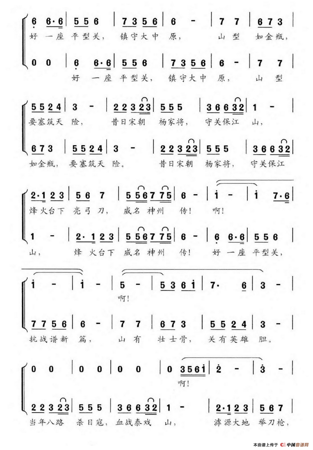 好一座平型关合唱谱该歌谱演奏者为陈涤非 崔树珍,歌曲名称为好一座平型关,歌谱类型为合唱谱。集体演唱多声部声乐作品的艺术门类,常有指挥,可有伴奏或无伴奏。它要求单一声部音的高度统一,要求声部之间旋律的和谐,是普及性最强、参与面最广的音乐演出形式之一。人声作为合唱艺术的表现工具,有着其独特的优越性,能够最直接地表达音乐作品中的思想情感,激发听众的情感共鸣。声部的数量没有规定,一般有四个声部。多为男高音区,男中低音区,女高音区,女中低音区。