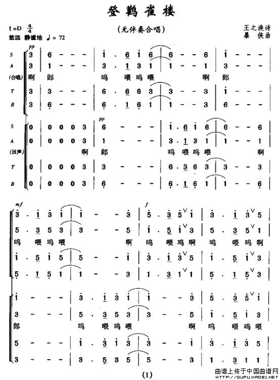 登鹳雀楼([唐]王之涣词 暴侠曲、无伴奏合唱)