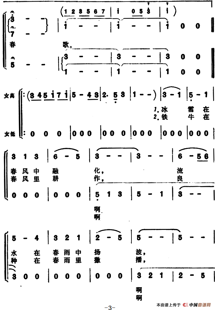 (3)男声合唱。由变声后的男同学组织的合唱。