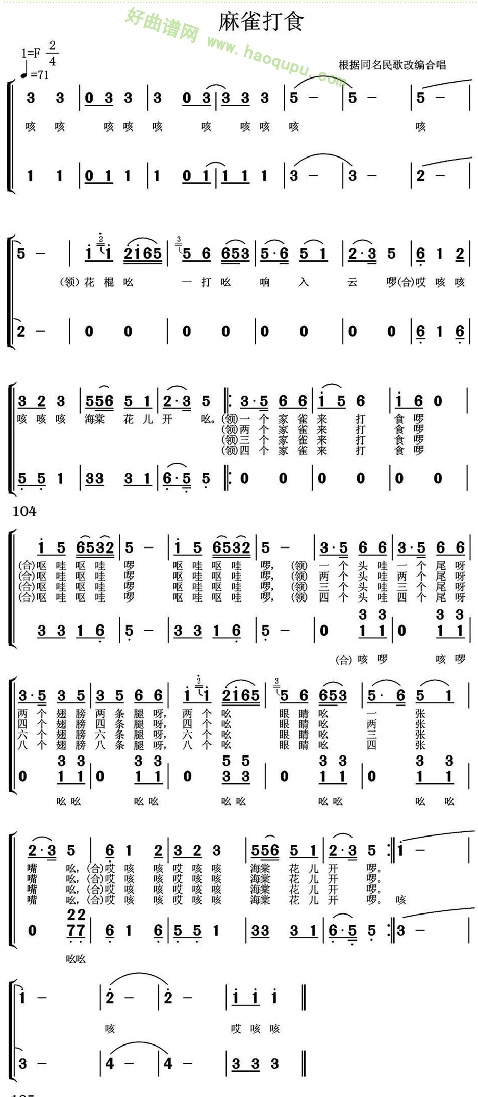 嘎达梅林简谱(傅克明改编合唱作曲)