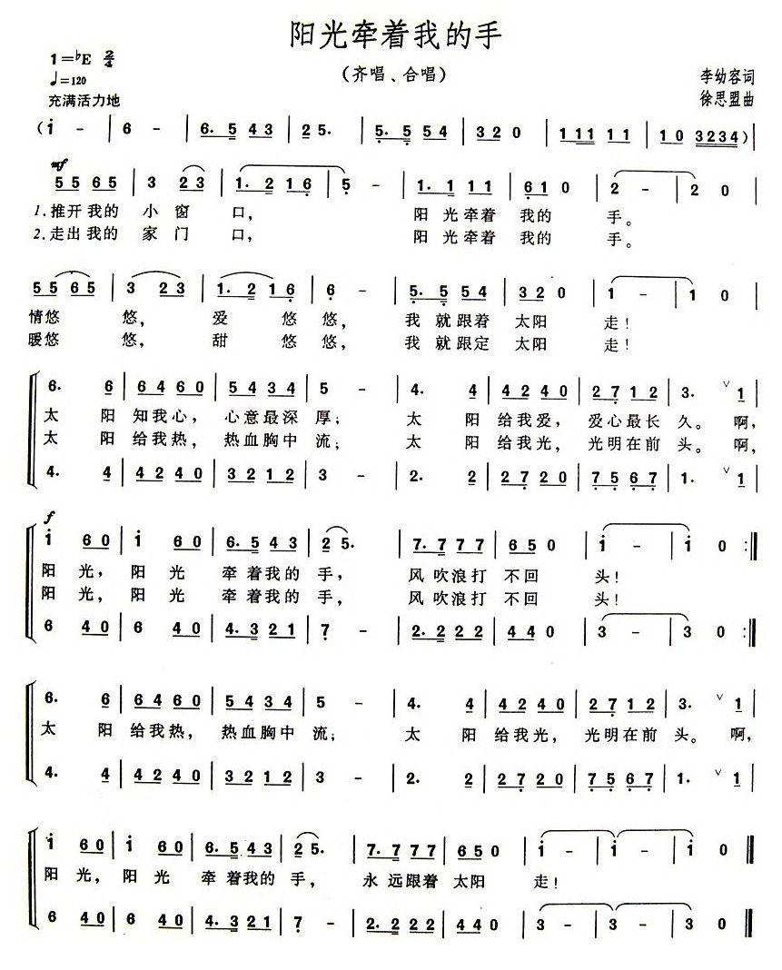 阳光牵着我的手简谱(徐思盟作曲)
