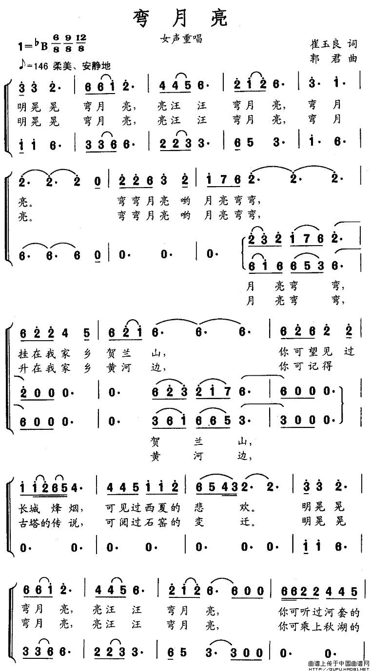 弯月亮(崔玉良词 郭君曲)合唱谱