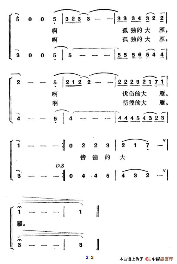 孤独的大雁(电影《街市流行曲》插曲)合唱谱该歌谱演奏者为徐东蔚,歌曲名称为孤独的大雁,歌谱类型为合唱谱。选自《徐东蔚歌曲选》