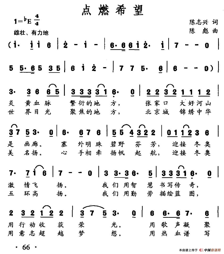 点燃希望合唱谱