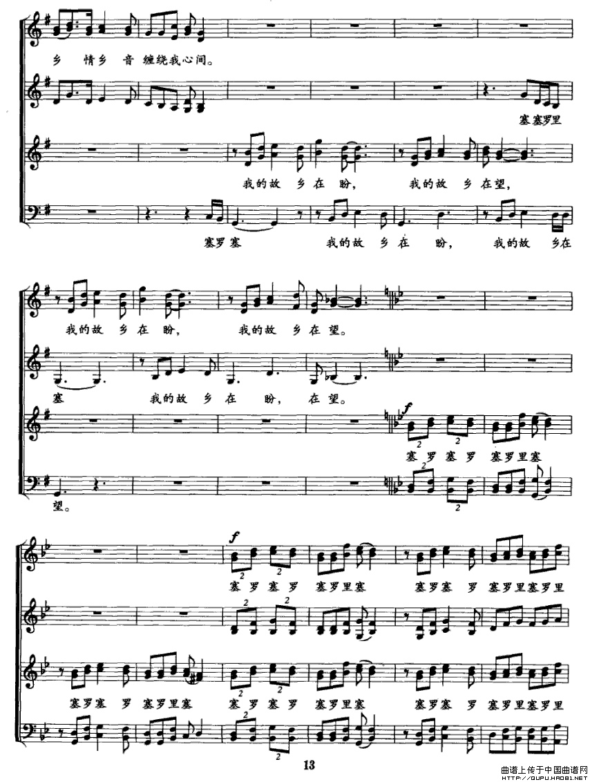 :回家(樊俊智词 姬秀明曲、男声小合唱)合唱谱该歌谱演奏者为姬秀明,歌曲名称为回家,歌谱类型为。合唱(hé chàng)chorus指集体演唱多声部声乐作品的艺术门类,常有指挥,可有伴奏或无伴奏。它要求单一声部音的高度统一,要求声部之间旋律的和谐,是普及性最强、参与面最广的音乐演出形式之一。人声作为合唱艺术的表现工具,有着其独特的优越性,能够最直接地表达音乐作品中的思想情感,激发听众的情感共鸣。声部的数量没有规定,一般有四个声部。多为男高音区,男中低音区,女高音区,女中低音区。