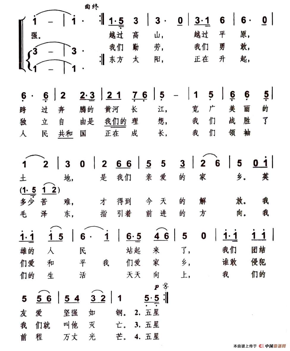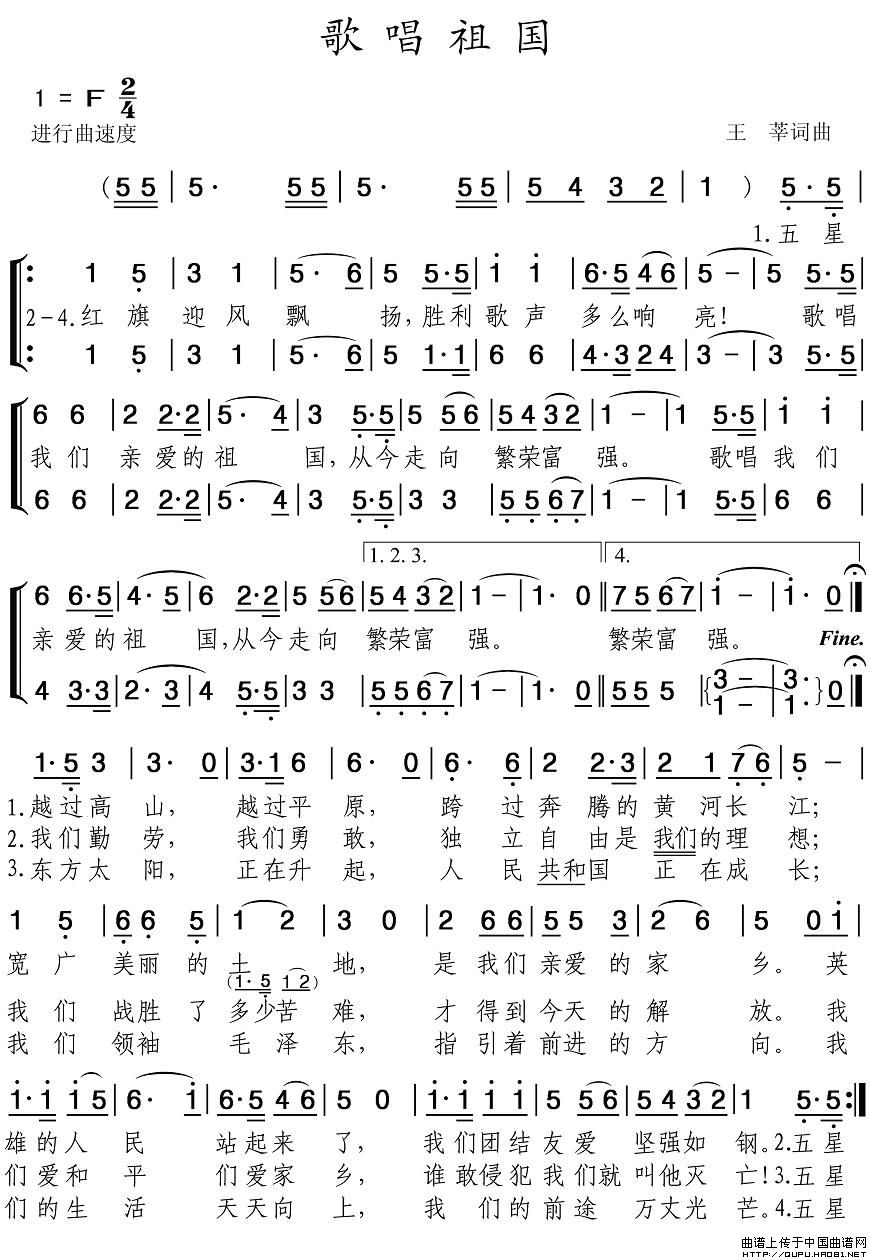 二胡乐谱曲谱 我的祖国(二胡二重奏 影片《上甘岭