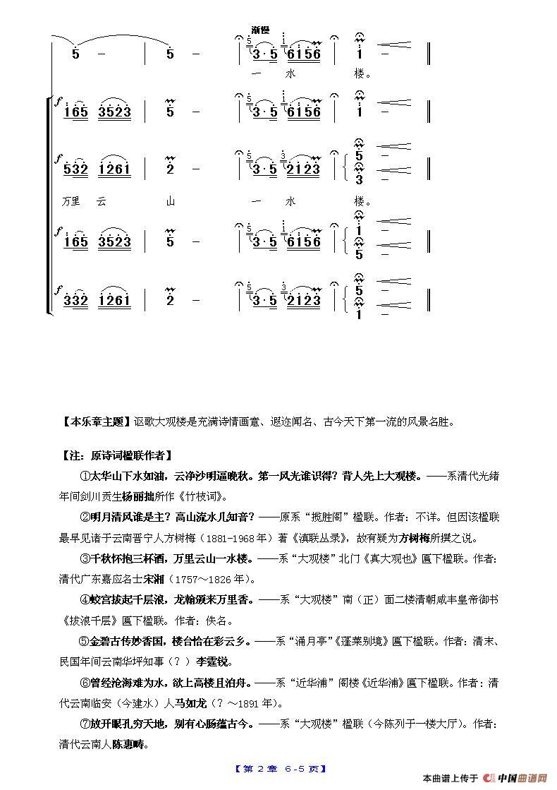《大观楼音诗组唱》第二章:万里云山一水楼合唱谱