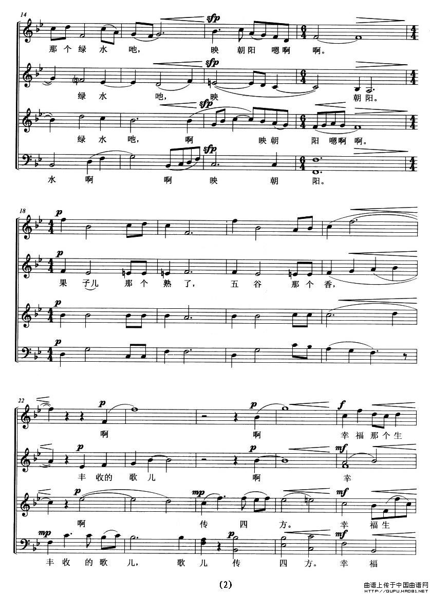 高梁那个红来稻花那个香, 满担那个谷子,堆满仓。咱们的共产党哎,领导的好啊,沂蒙山的人民哎, 喜洋洋。沂蒙山的人民哎 喜洋洋啊。