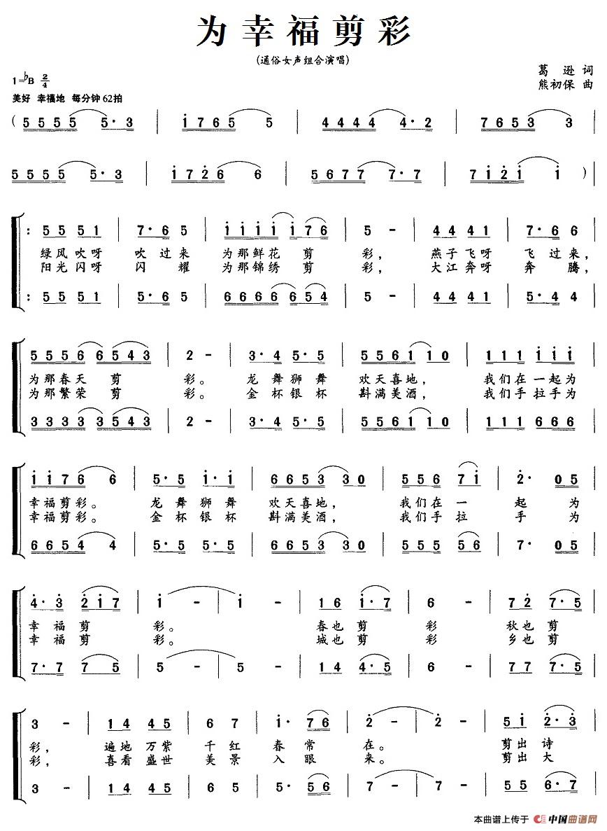 为幸福剪彩(葛逊词 熊初保曲)合唱谱