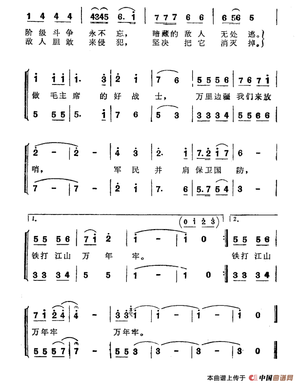 军民并肩守边防合唱谱