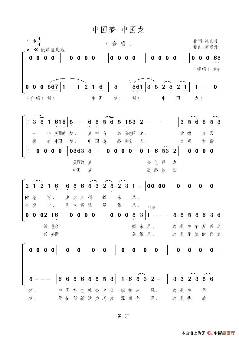 中国梦 中国龙(陈东升 词曲)