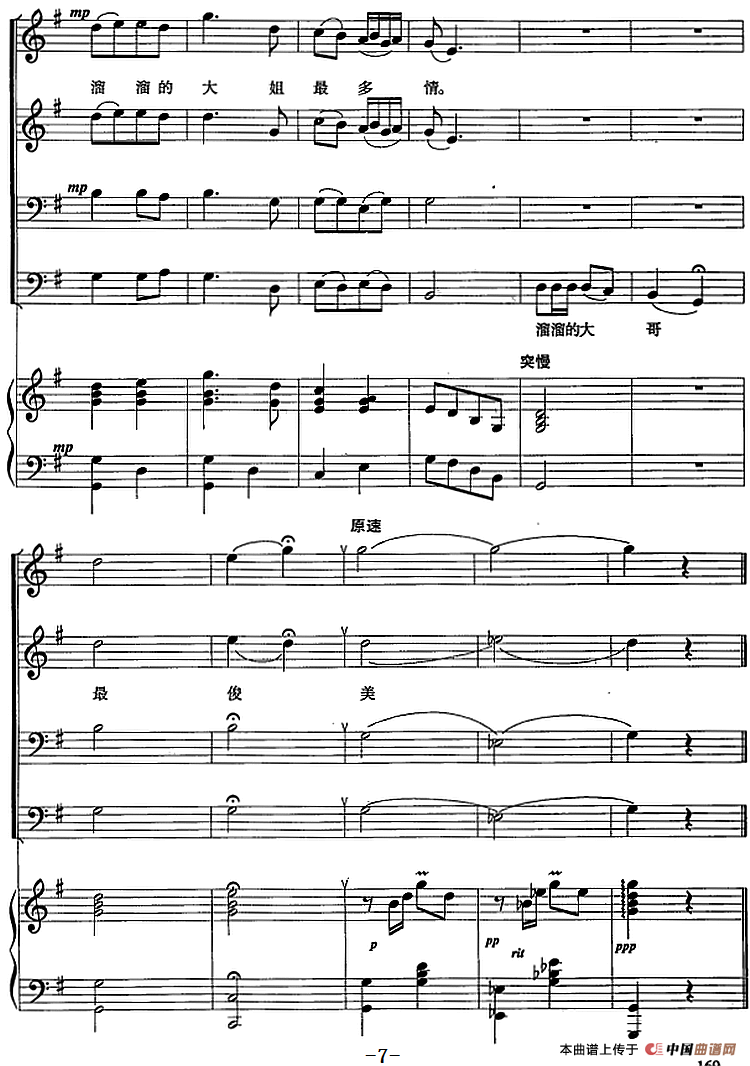 送郎(陕北民歌、刘同生改编)合唱谱