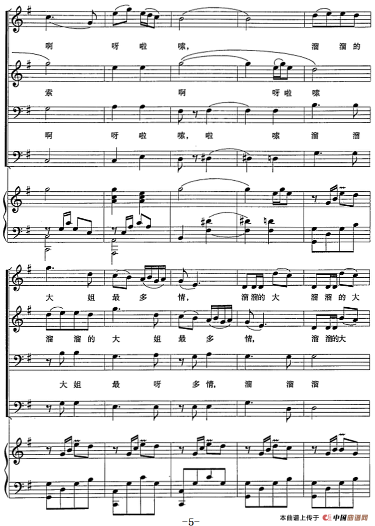 青丝鸟(浙江民歌、顾自修改编)合唱谱