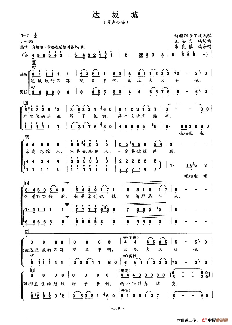 达坂城(新疆维吾尔族民歌 男声合唱)