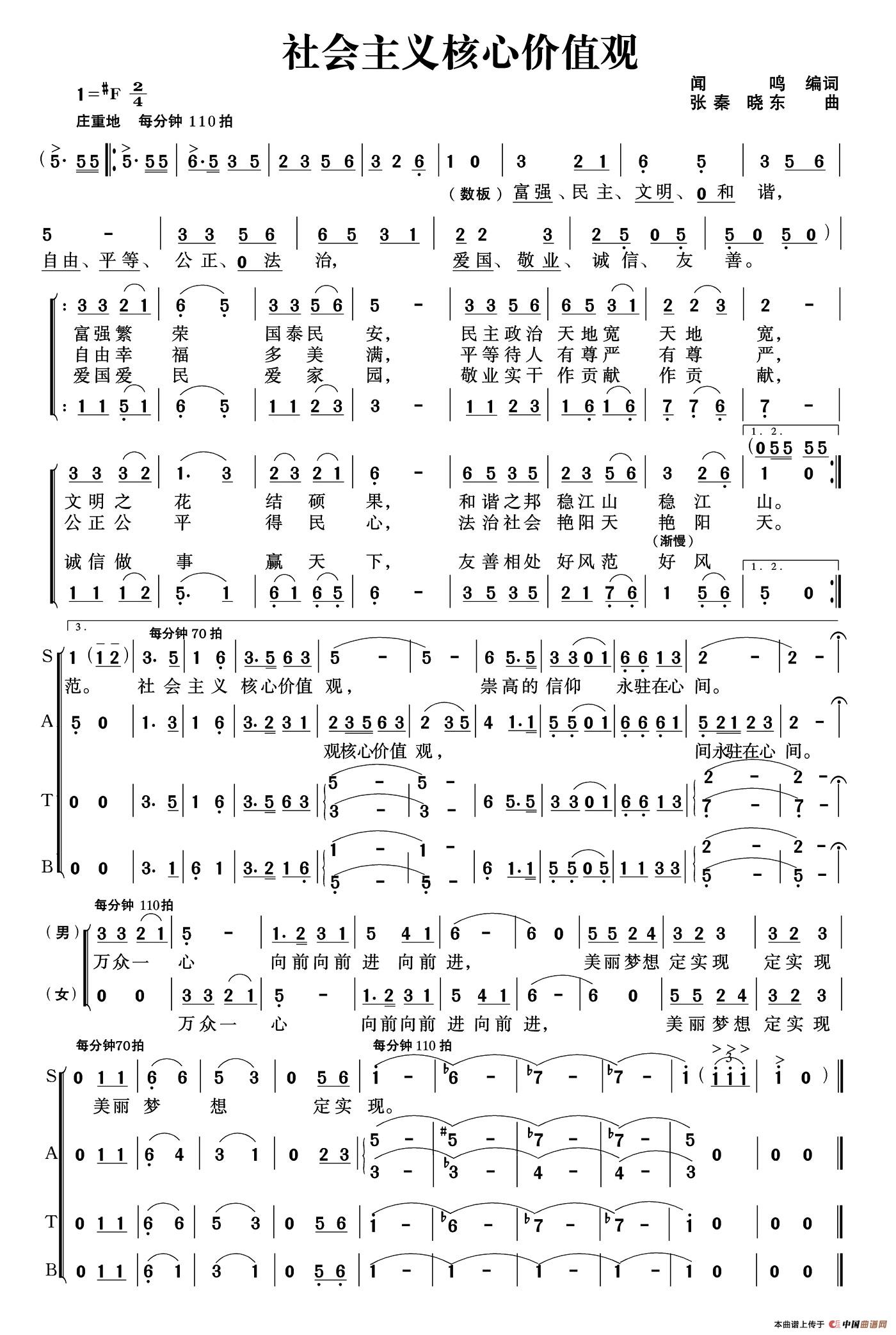 社会主义核心价值观(闻鸣词 张秦 晓东曲)