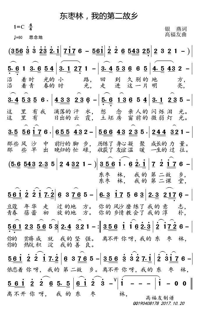 东枣林,我的第二故乡(银燕词 高福友曲)歌词 《东枣林,我的第二故乡》文本歌词
