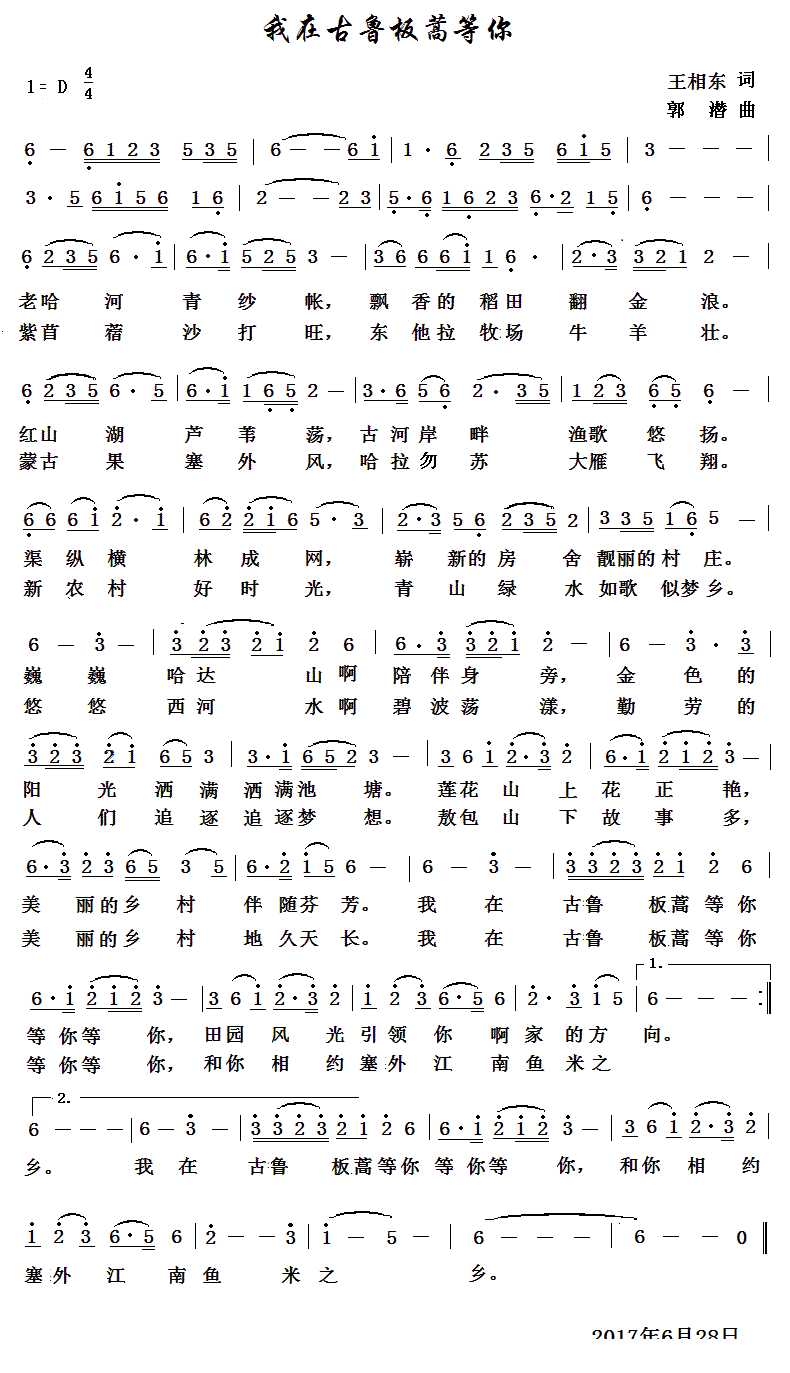 我在古鲁板蒿等你(郭潜曲 郭潜词 齐萌演唱)