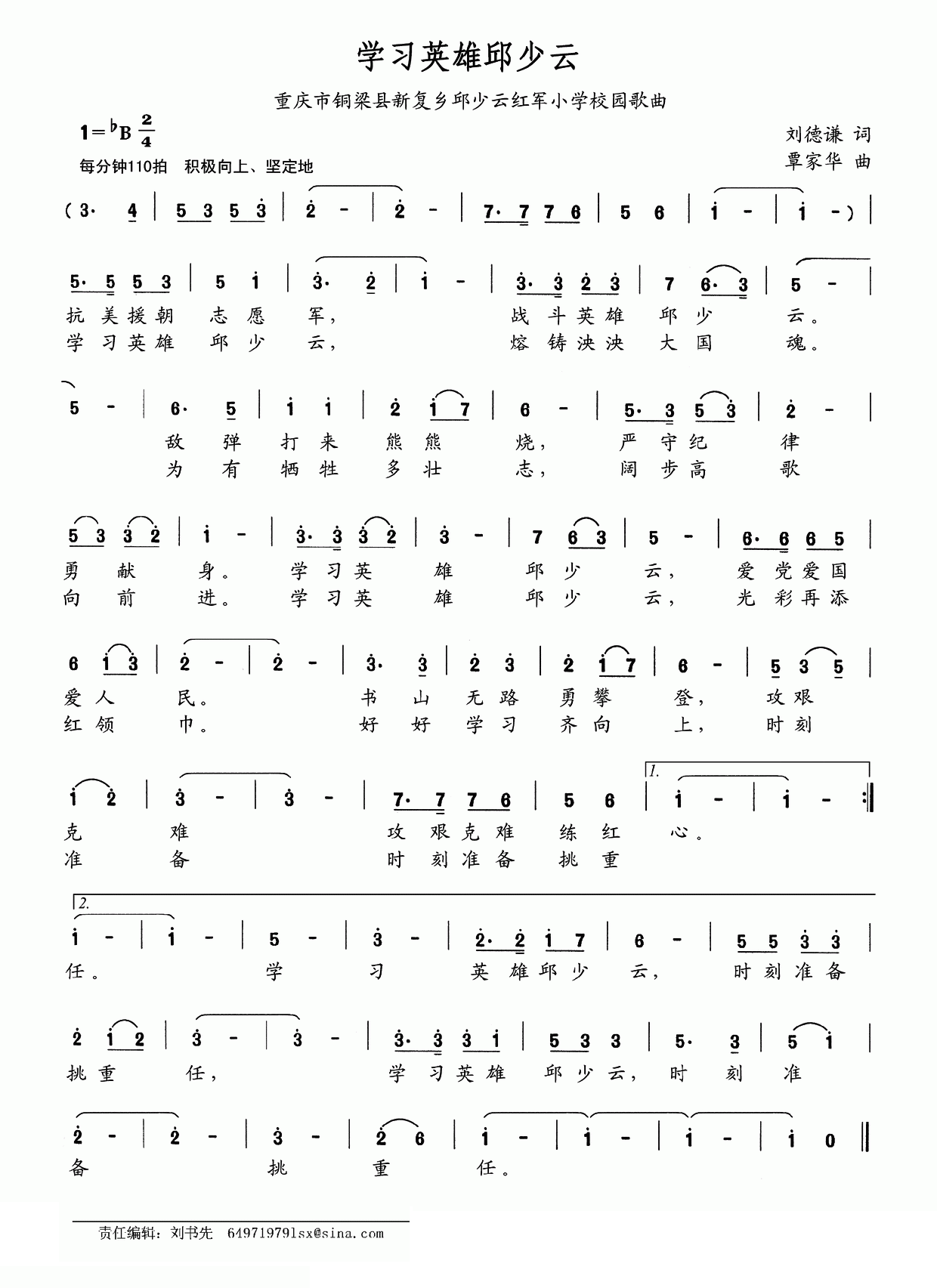 学习英雄邱少云(重庆市铜梁县新复乡邱少云红军小学校园歌曲)曲谱