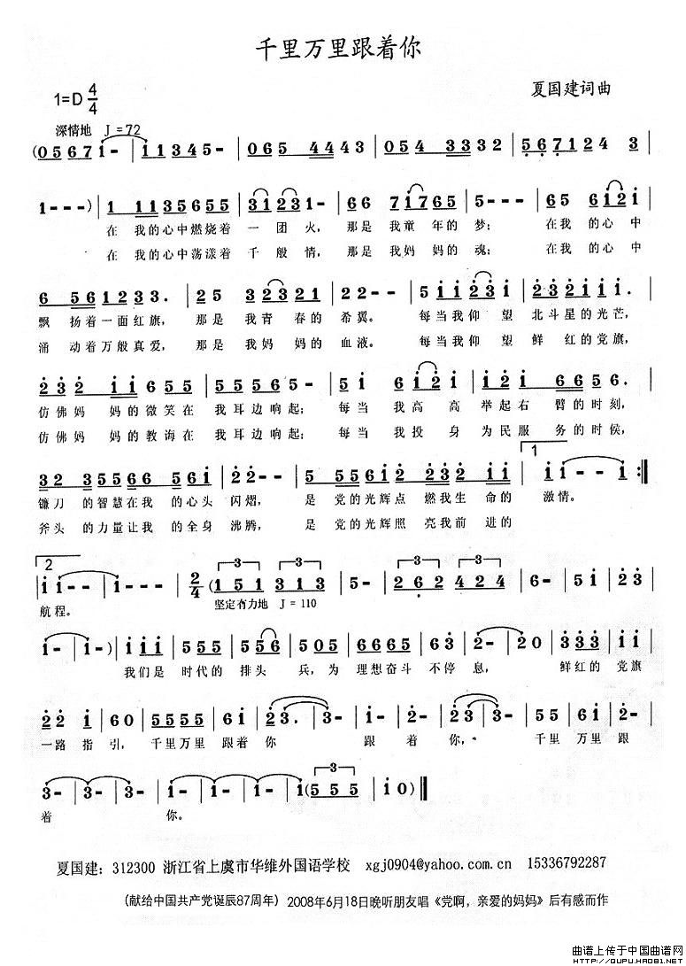 二胡乐谱曲谱 我的祖国(二胡二重奏 影片《上甘岭