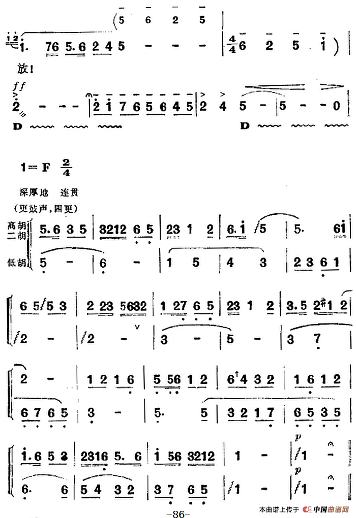 二胡乐谱曲谱 我的祖国(二胡二重奏 影片《上甘岭