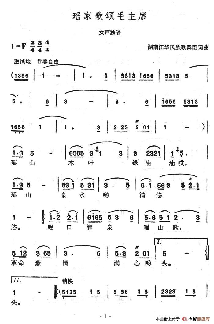 瑶家歌颂毛主席(湖南江华民族歌舞团词曲)