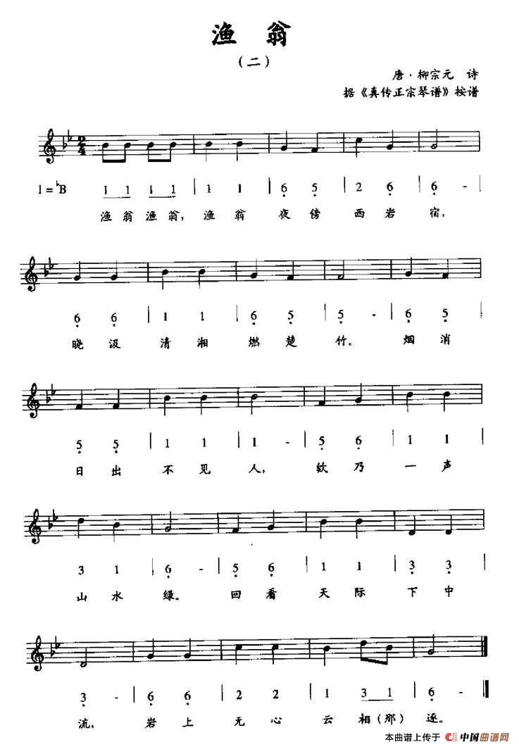 渔翁(二)(据《真传正宗琴谱》按谱、线简谱