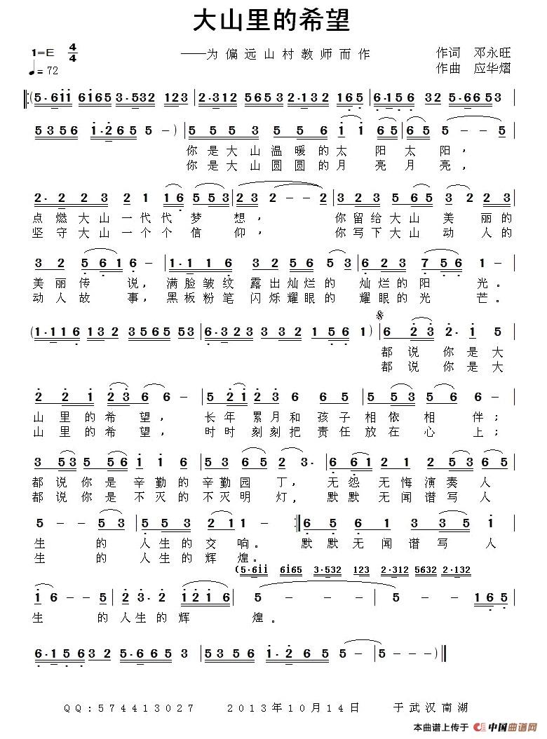 二胡乐谱曲谱 我的祖国(二胡二重奏 影片《上甘岭