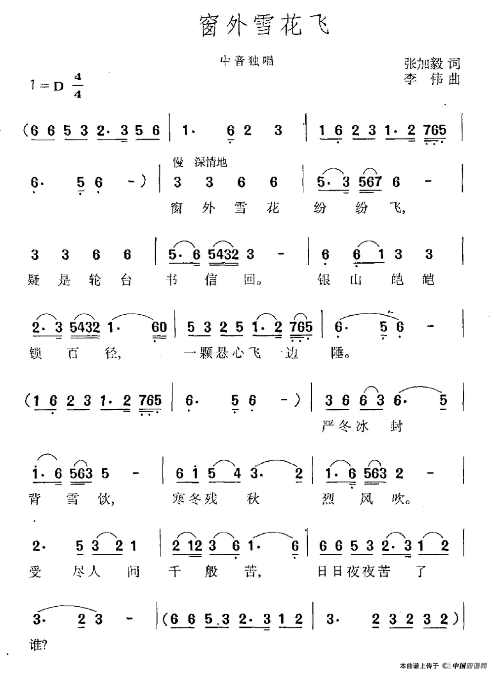 二胡乐谱曲谱 北风吹(歌剧《白毛女》选曲)