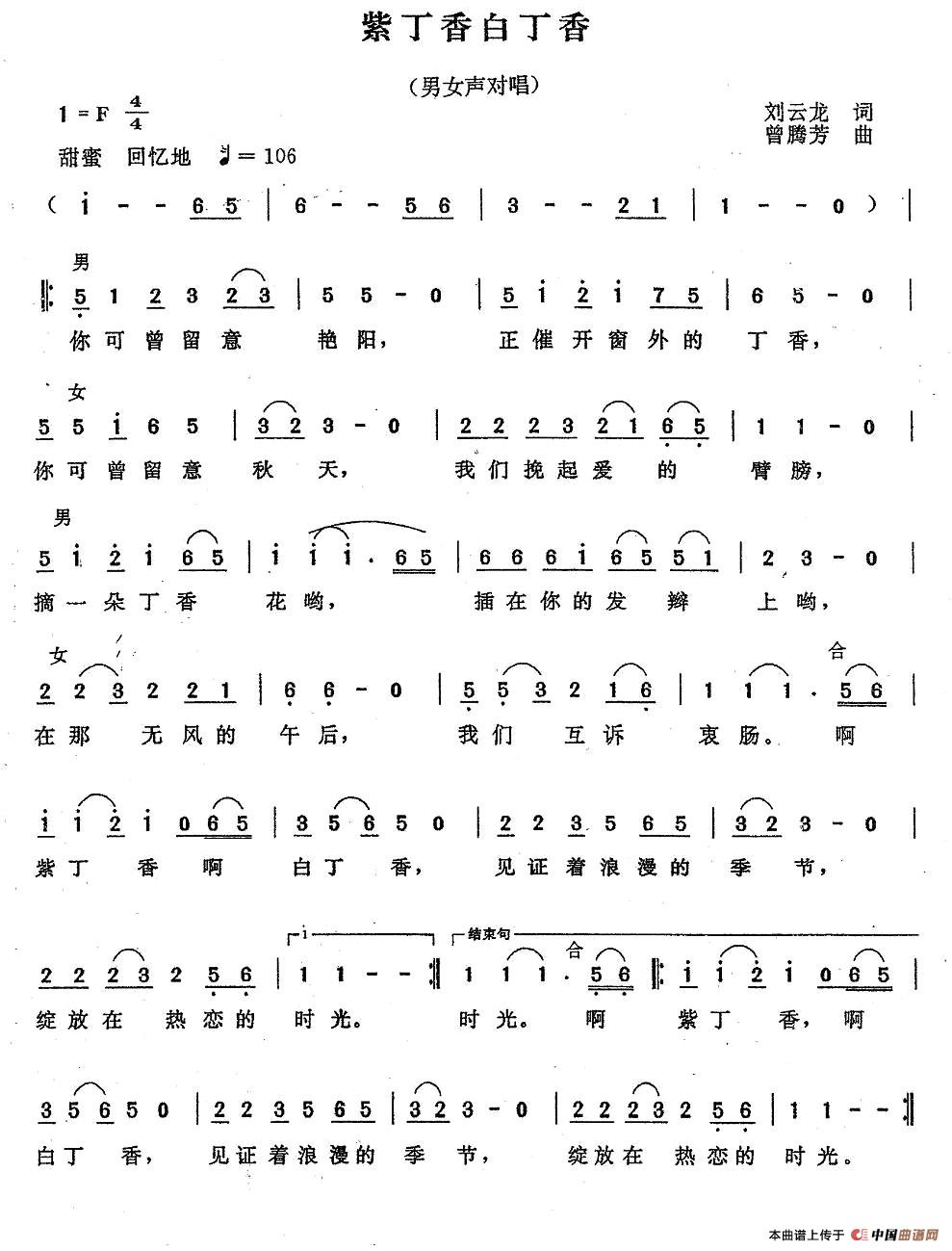 紫丁香白丁香(刘云龙词 曾腾芳曲)