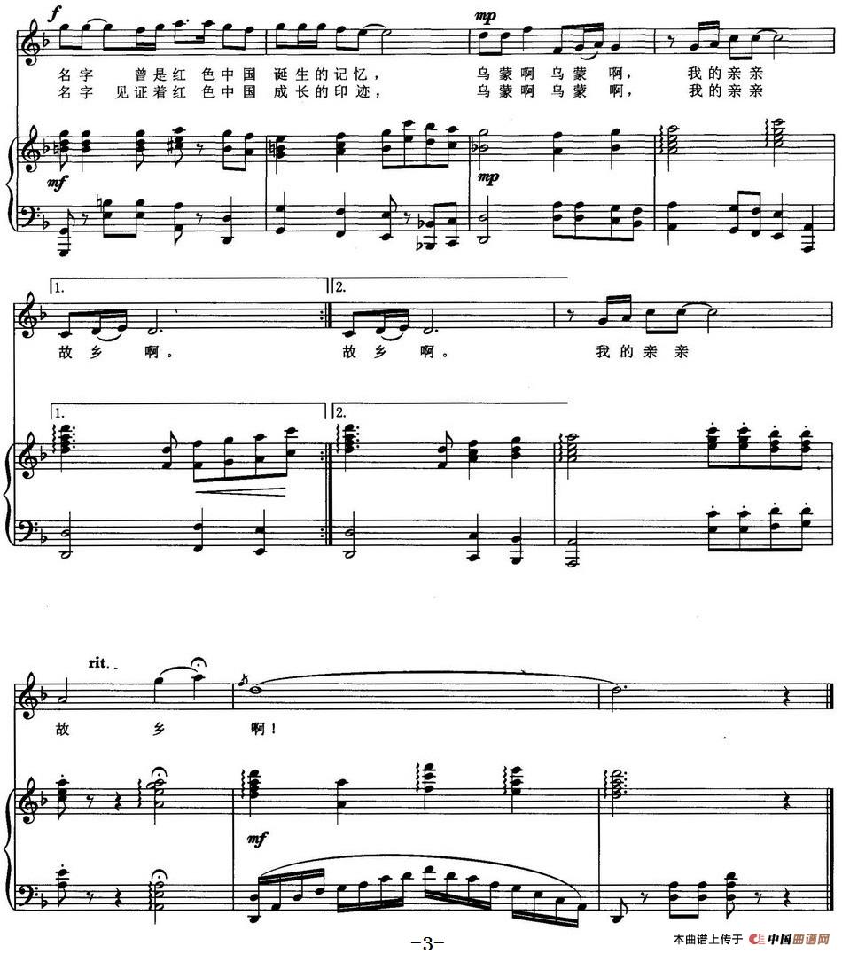 二胡乐谱曲谱 我的祖国(二胡二重奏 影片《上甘岭