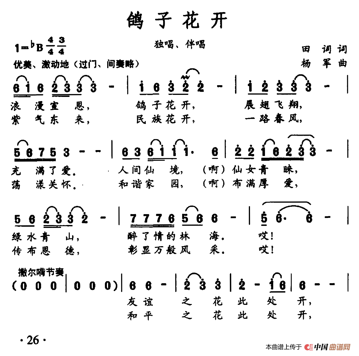 二胡乐谱曲谱 我的祖国(二胡二重奏 影片《上甘岭
