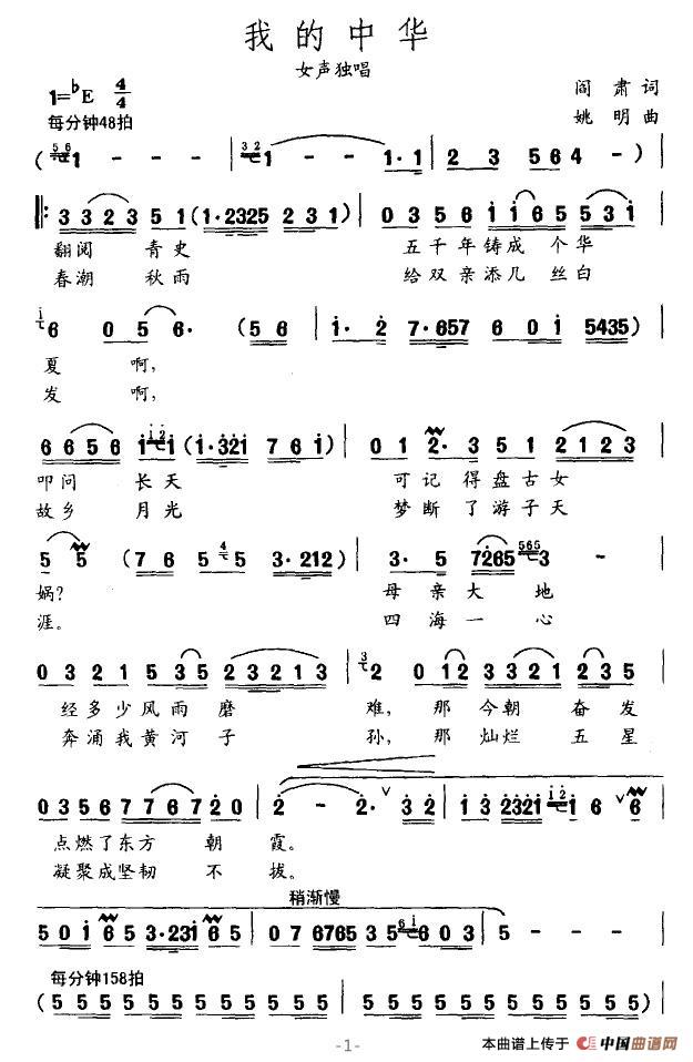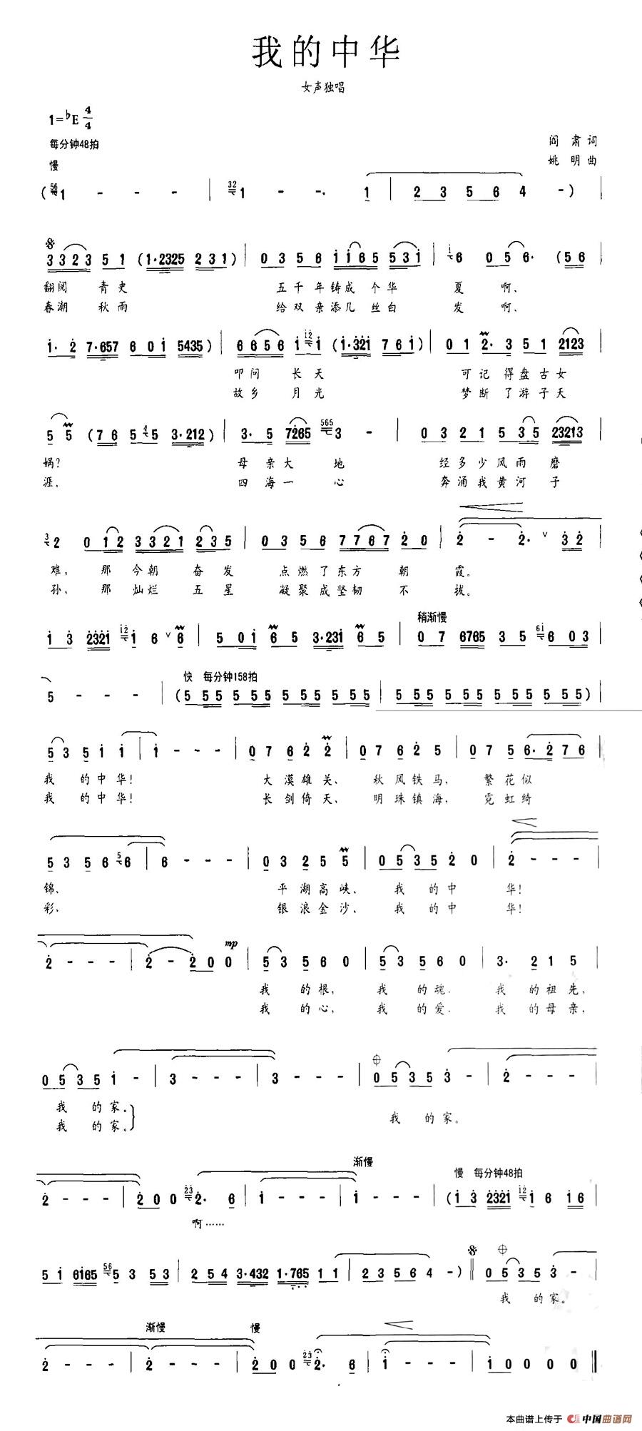 二胡乐谱曲谱 我的祖国(二胡二重奏 影片《上甘岭