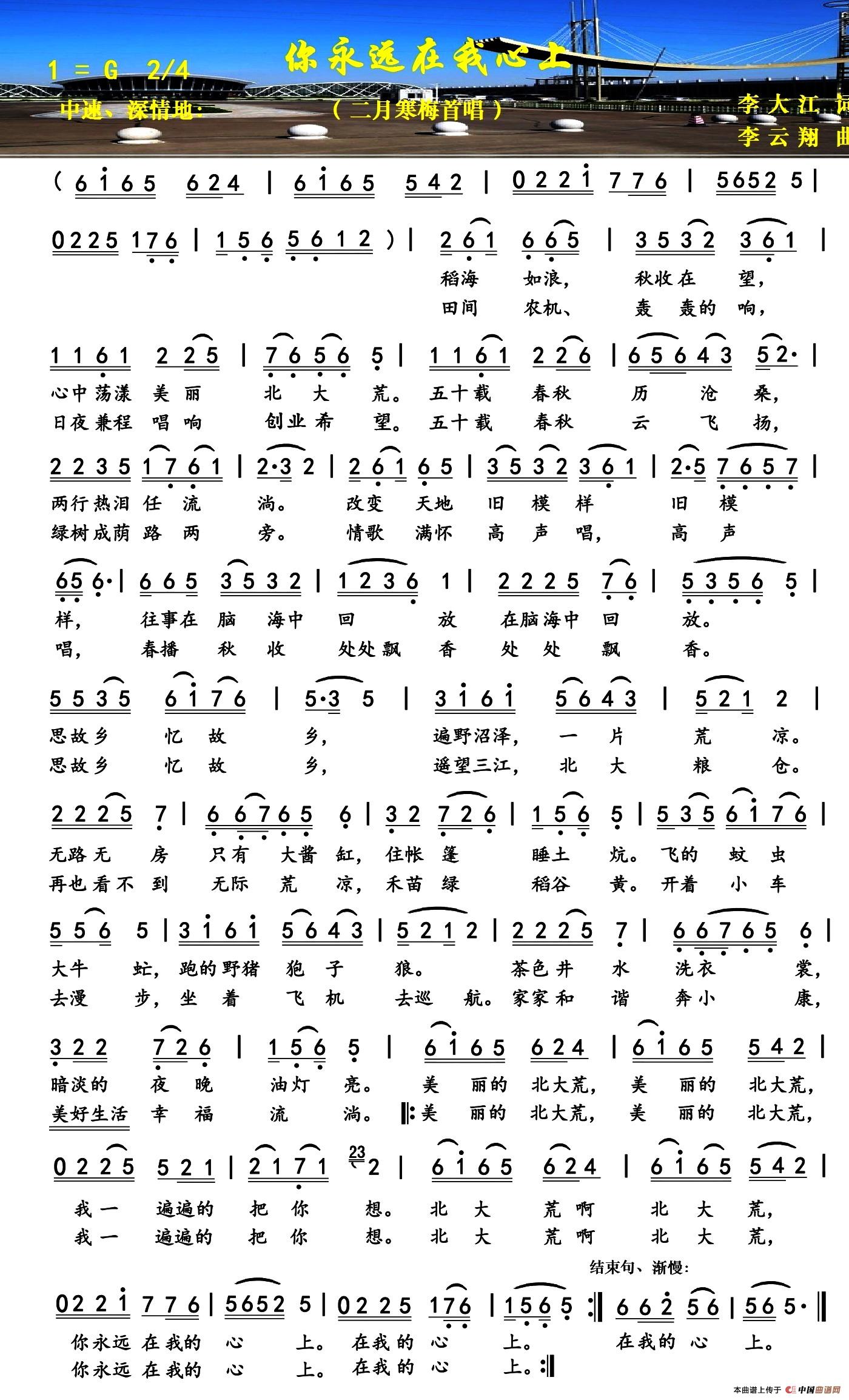 二胡乐谱曲谱 我心永恒(杰姆斯·奥斯曲)