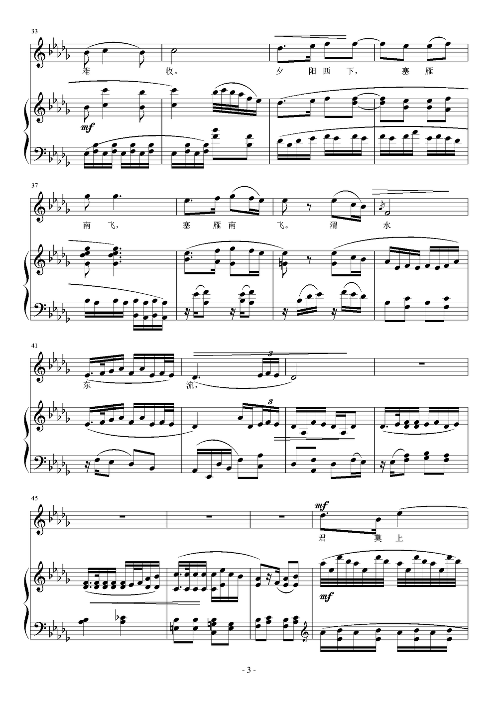 二胡乐谱曲谱 松花江上(张寒晖曲 王莉莉订谱)