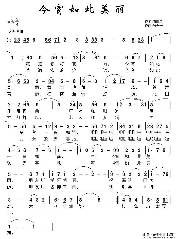 今宵如此美丽(石顺义词 张千一曲)