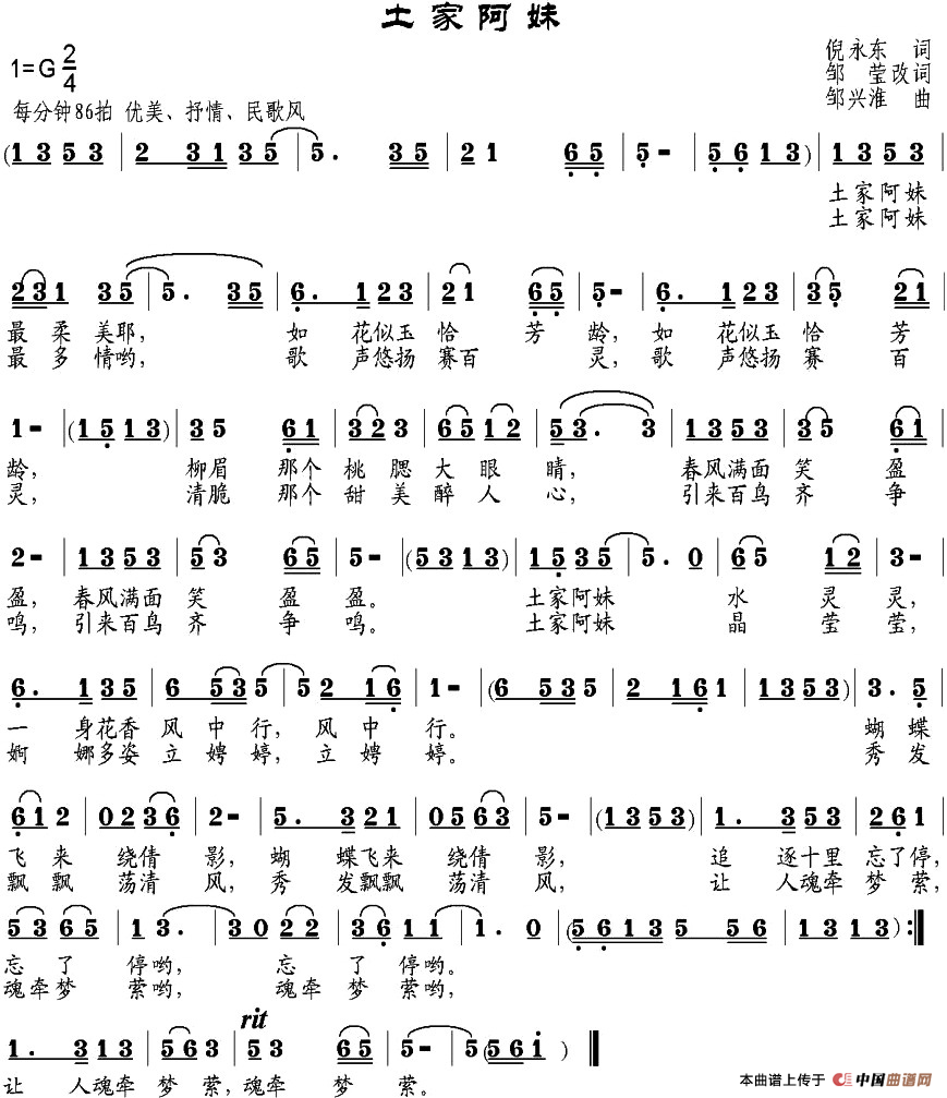 土家阿妹(倪永东词、邹莹改词 邹兴淮曲)