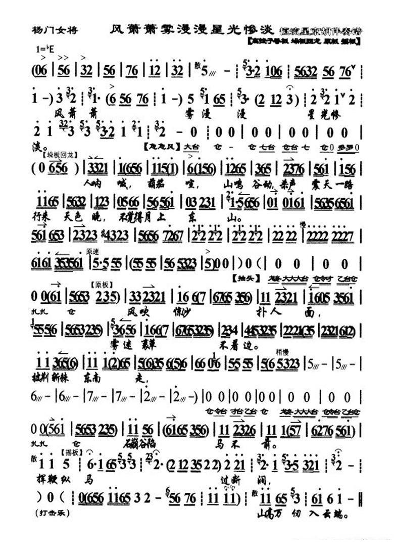 京剧戏曲谱 风萧萧路漫漫(《杨门女将》选段、琴谱)