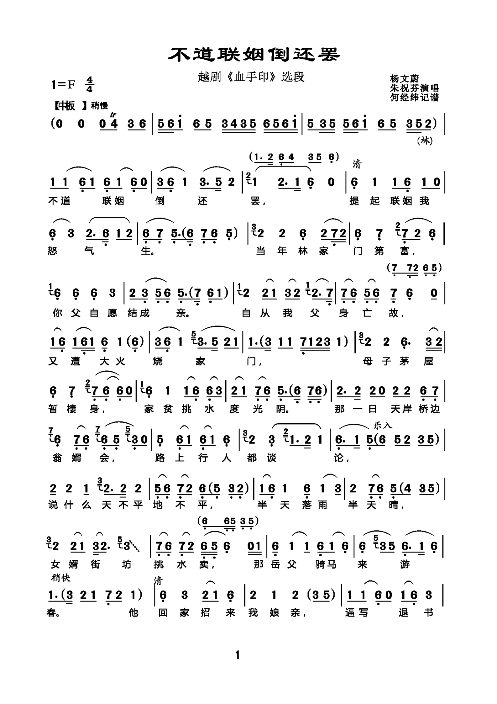 不道联姻倒还罢 不道联姻倒还罢(越剧《血手印》选段)简谱-越剧曲谱 曲谱 歌谱下载