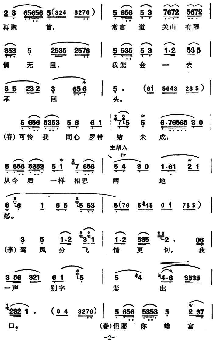 越剧戏曲谱 选自《春香传》春香、李梦龙对唱唱段:明日要往汉阳走