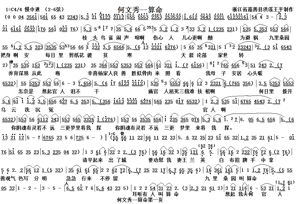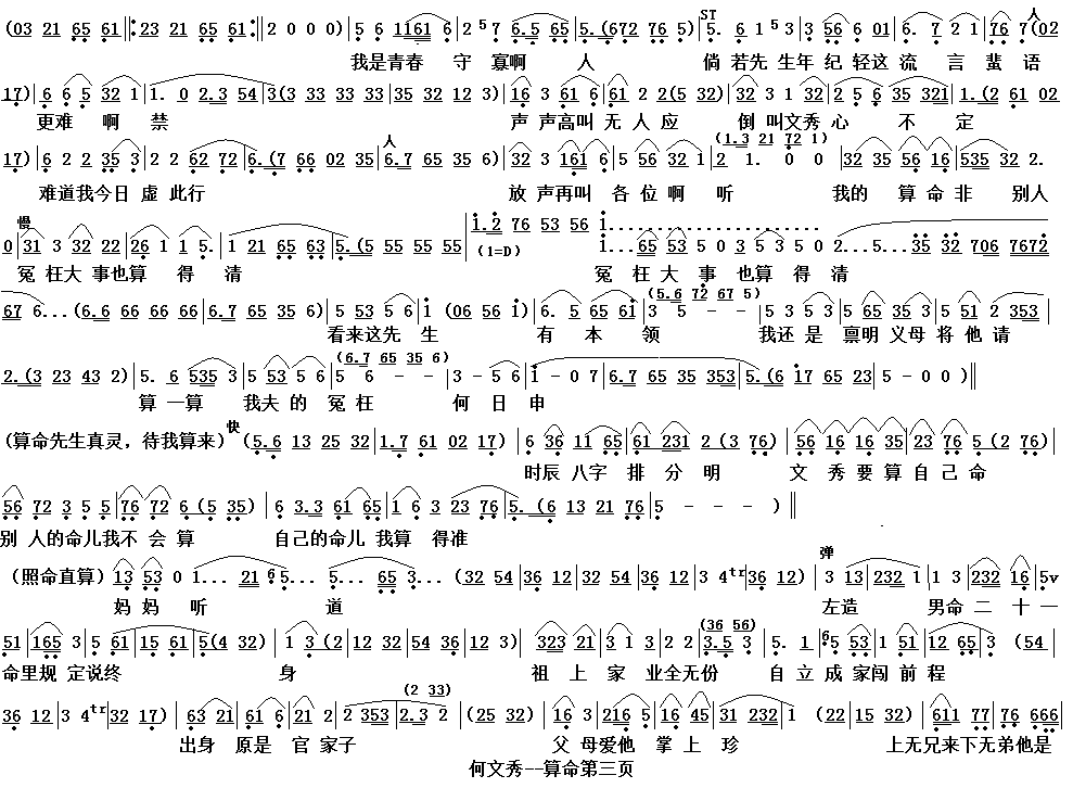 越剧戏曲谱 算命(越剧《何文秀》选段)