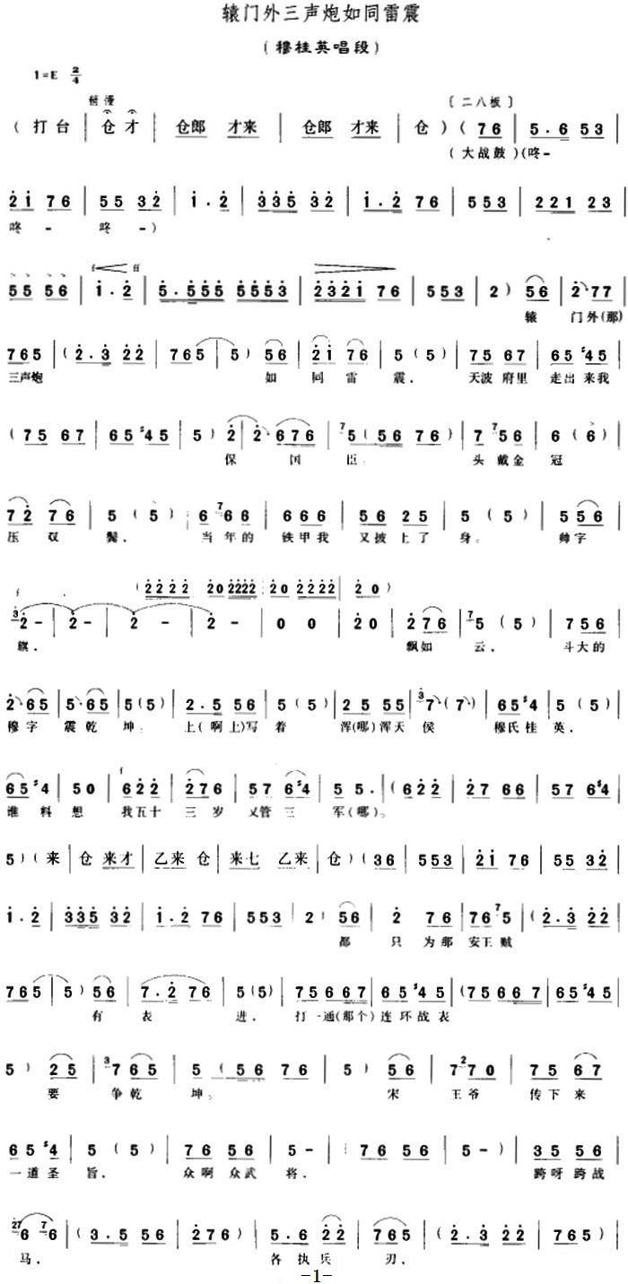 P2:《辕门外三声炮如同雷震》豫剧唱谱